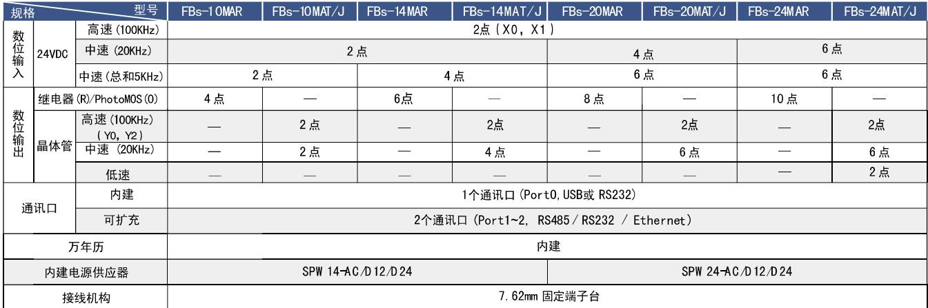 (T/J機型具2點100KHz) 內置1個RS232/USB通訊口(最多可擴至3個)