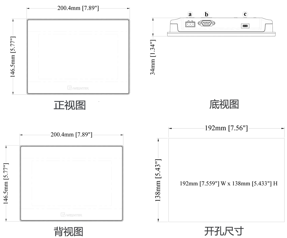 寬輸入電壓范圍10.5~28VDC7" 800x480 TFT LCD, LED 背光燈無風扇冷卻系統內建儲存內存及萬年歷IP65 面板防護等級COM2 RS-485 支持 MPI 187.5K內置電源隔離保護